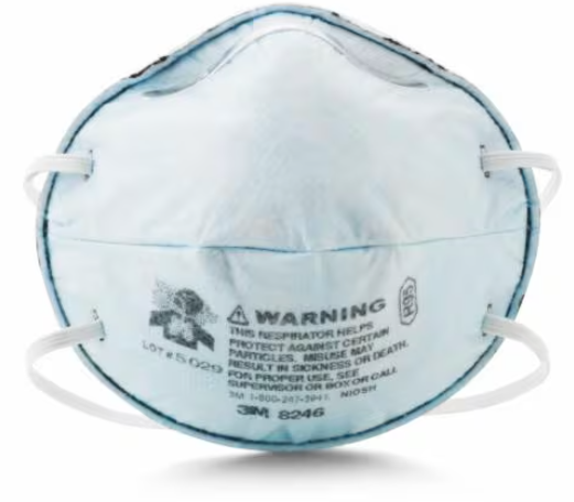 • The 3M 8246 is a disposable, cup-style respirator providing P2/R95 protection against particulates, plus nuisance-level acid gas relief for gases like sulphur dioxide and hydrogen fluoride