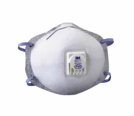 • The 3M 8577 is a disposable respirator with a GP2/P95 particulate filter, an activated carbon layer for nuisance organic vapor relief, and a 3M Cool Flow valve for easier breathing in hot, humid conditions