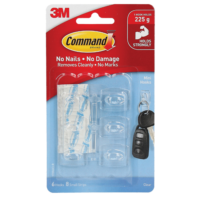 3M Command 17006 Hook Mini Clear 6 Pack Adelaide Direct Stationers