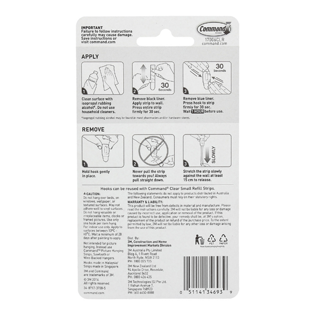 • Rehanging them is as easy as applying a Command Clear Small Refill Strip, so you can take down, move and reuse them again and again.