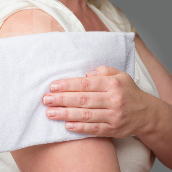 • Insert the hot/cold pack into the towel cover provided to insulate the cold