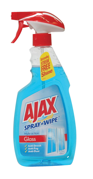 Ajax Spray N Wipe Glass cleaner cleans without streaking and dries quickly, keeping your glass shiny any clear for longer.
