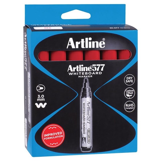 Artline 577 Whiteboard Marker Red (Sold as Each, 12 in a Box) Adelaide Direct Stationers