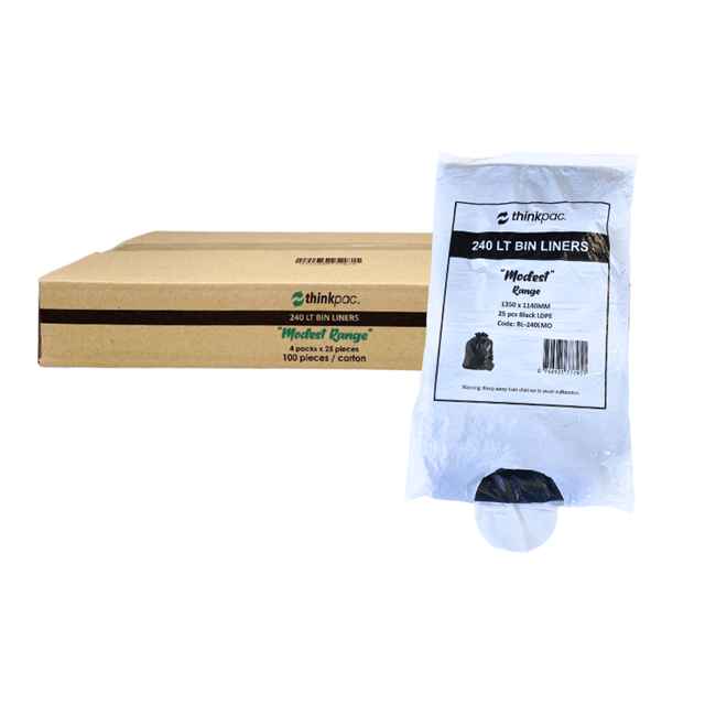 Aspire Bin Liners Everyday 240L Black, 25 Per Back, (4 Per Carton) Adelaide Direct Stationers