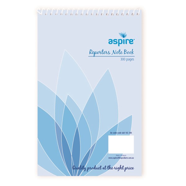 Aspire Spiral Reporter Notebook Top Opening 300 Pages (Sold as Each, 10 in a Pack) Adelaide Direct Stationers