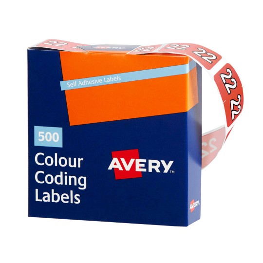 Avery 43272 Side Tab Year 2022 Label 25x38mm Dark Orange (500 roll) Adelaide Direct Stationers