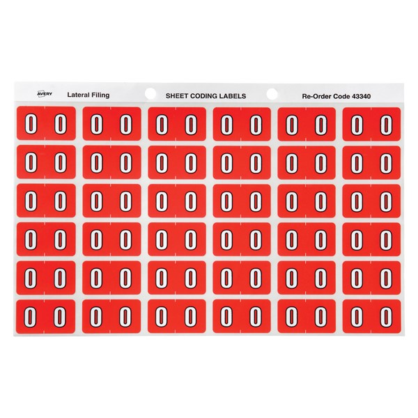 • There are 180 pink Numeric 0 Side Tab Colour Coding Labels in a pack with a size of 25 x 38mm ready to stick straight onto the side tab of your Avery Lateral Files.