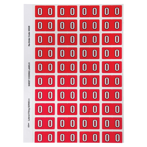 • There are 240 red Alphanumeric 0 Side Tab Colour Coding Labels in a pack, size of 25mm x 42mm ready to stick straight onto the side tab of your Avery Lateral Files.
