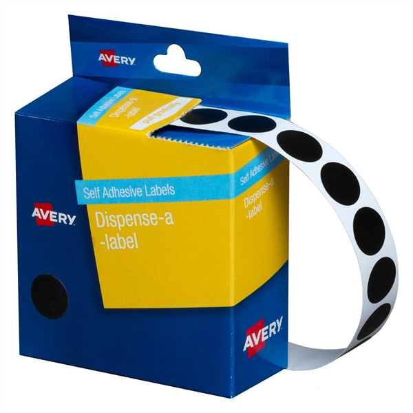 Avery Dispenser Dot Stickers 14mm Diameter Black 1050 Pack (Sold as Each, 5 in a Box) Adelaide Direct Stationers