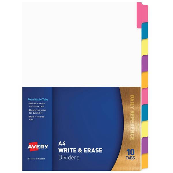 Avery Dividers Write and Erase 10 Tabs Brights Multicoloured Adelaide Direct Stationers