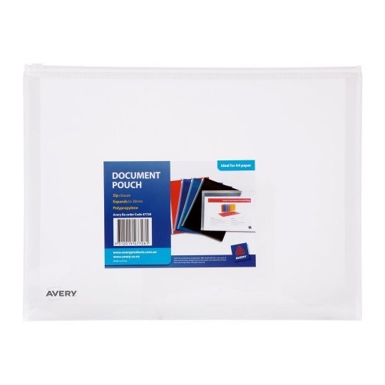 Avery Document Pocket with Zip Plastic Clear Adelaide Direct Stationers