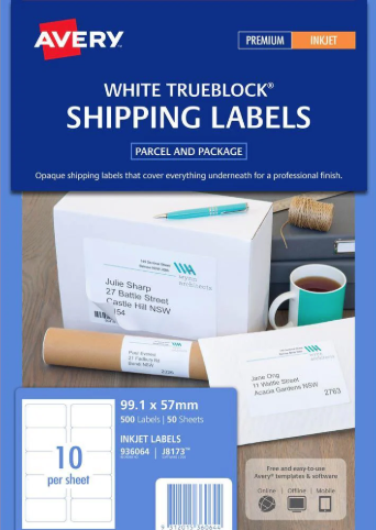 Getting custom and professional labels for your shipping needs has never been so easy and cost effective! Avery White TrueBlock Parcel Labels completely cover everything underneath so you can reuse boxes and mailing tubes, without the mess of torn labels or the visibility of another companys logo