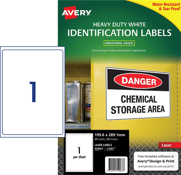 Avery L7067 Laser Labels Heavy Duty 1UP 25 Pack Adelaide Direct Stationers