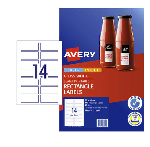 Avery L7123 Labels Glossy Rectangle 14UP White 10 Pack Adelaide Direct Stationers