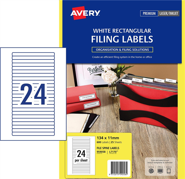 Avery L717025 Laser Labels File Spine White 25 Pack Adelaide Direct Stationers