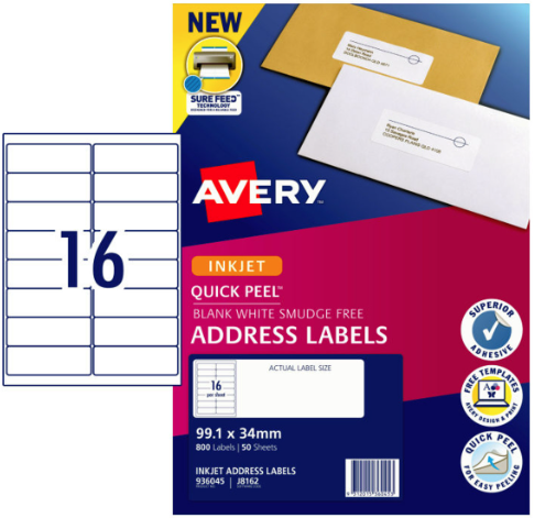 Avery Label J8162M 16Up Pack 50 Adelaide Direct Stationers