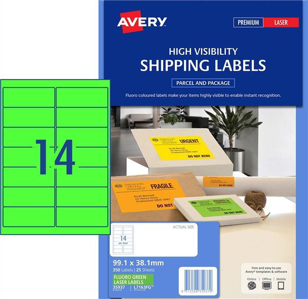 When you want something to stand out, only High Visibility fluoro will do and Avery fluoro green shipping labels wont fail to grab attention