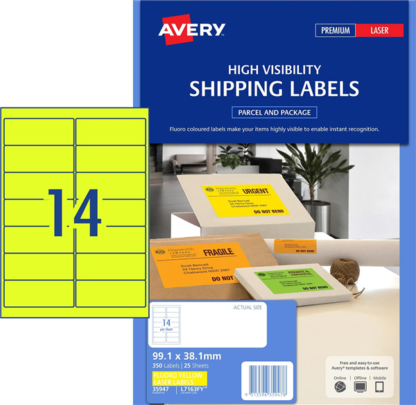 When you want something to stand out, only High Visibility fluoro will do and Avery fluoro yellow shipping labels won't fail to grab attention