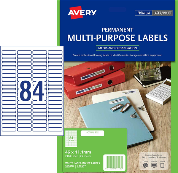 Avery Permanent Multi purpose Labels are designed for many different uses around the home or office and come in a range of sizes to suit your labelling needs.
