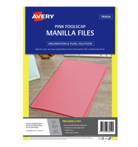 Avery Manilla Folder Pink Foolscap offers the highest quality from a strong and durable manilla board