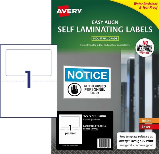 Avery Self Laminating Labels 190.5 x 127 mm 5 Pack Adelaide Direct Stationers