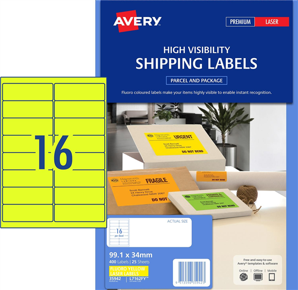 When you want something to stand out, only High Visibility fluoro will do and Avery fluoro yellow shipping labels won’t fail to grab attention