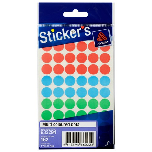 Avery Sticker Dot 13mm Assorted Adelaide Direct Stationers