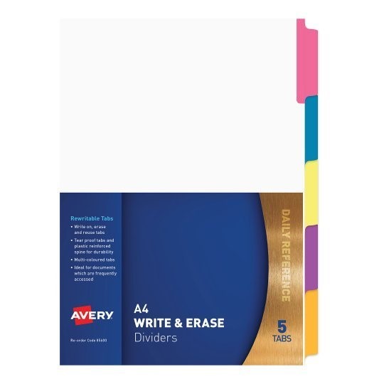 Avery Write and Erase Dividers 5 Tabs Brights Multicoloured Adelaide Direct Stationers