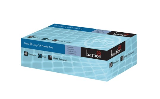 Bastion Nitrile Diamond Grip, Long Cuff, Blue, Powder Free, Large - Carton/500 Adelaide Direct Stationers