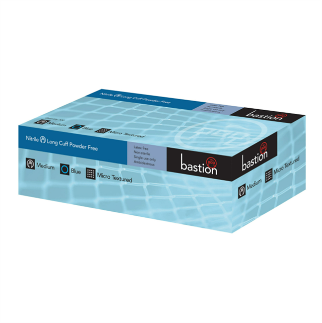 Bastion Nitrile Diamond Grip Long Cuff Blue Powder Free X Large Box 50