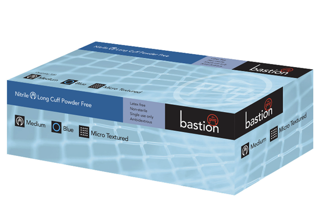 Bastion Nitrile Long Cuff Large Powder Free Micro Textured Pk100