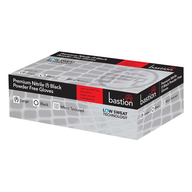 Bastion Premium Nitrile Micro Textured Powder Free Gloves Black Large 100 Pack Adelaide Direct Stationers
