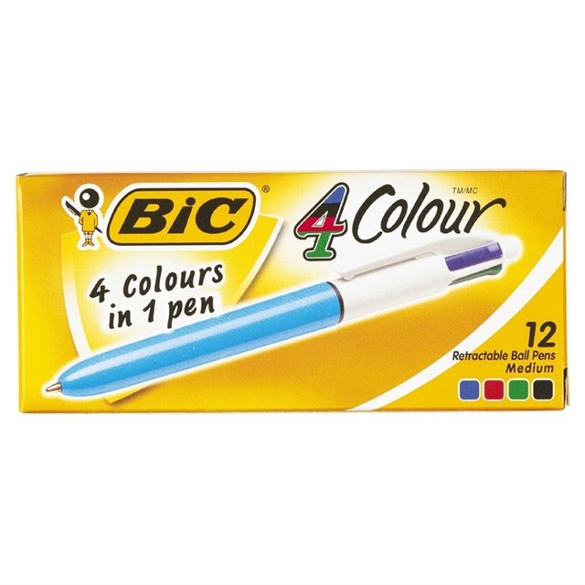 The classic BIC 4 Colour Medium Retractable Ballpoint Pen is perfect for any workspace as it allows you to record data in different colours without having to constantly change pens