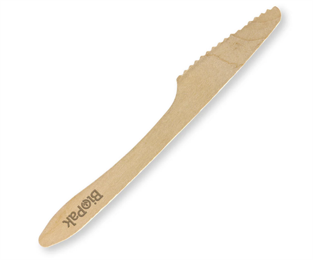 BioPak 19Cm Coated Knife 100 Pack - Wood
