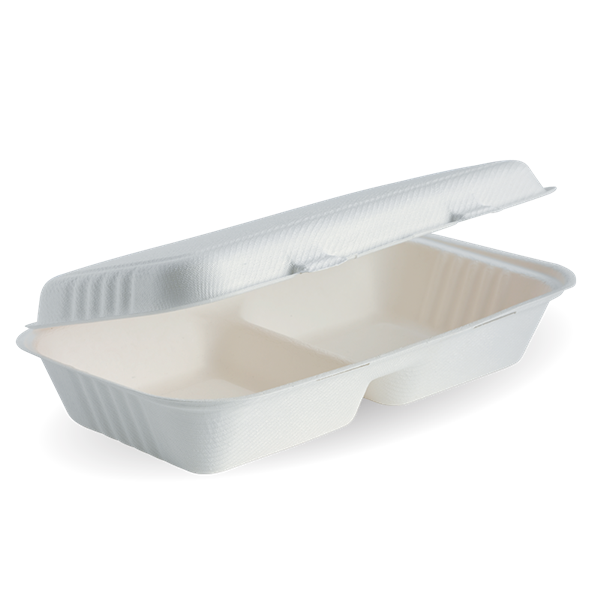 Biopak BioCane Clamshell 2 Equal Compartment 28x16x7cm White Adelaide Direct Stationers