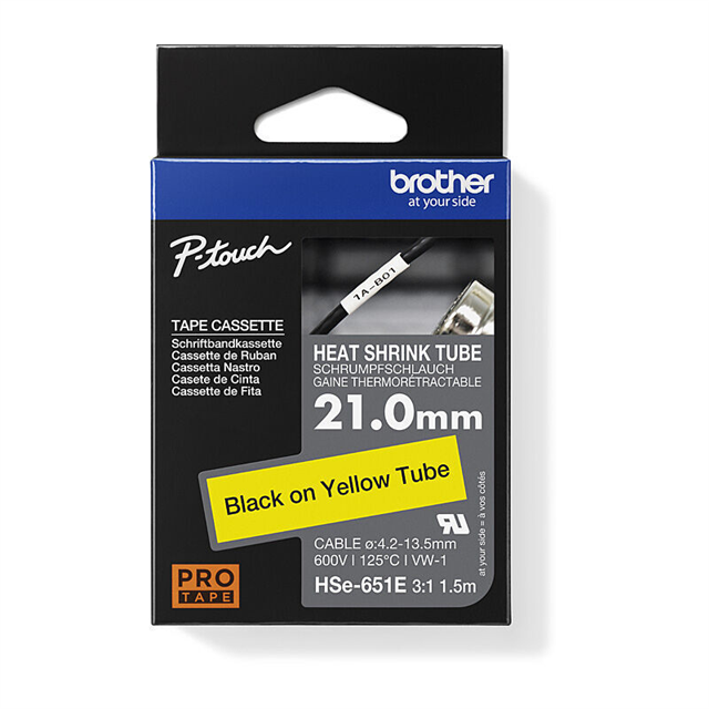 21.0MM BLACK ON YELLOW HEAT SHRINK TUBE CATRIDGE 3:1 (compatible with PT-E300VP/E550WVP/D800W/P750W/P900W/P950NW)