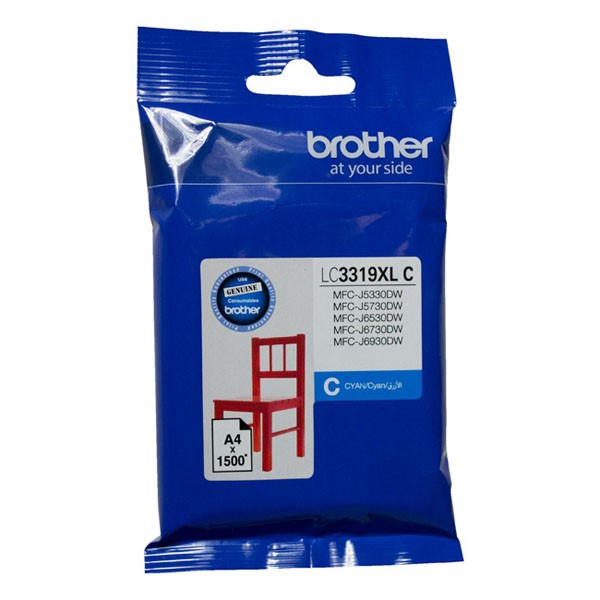 This is a genuine Brother LC-3319 Cyan Ink Cartridge, designed to work with the Brother inkjet printers