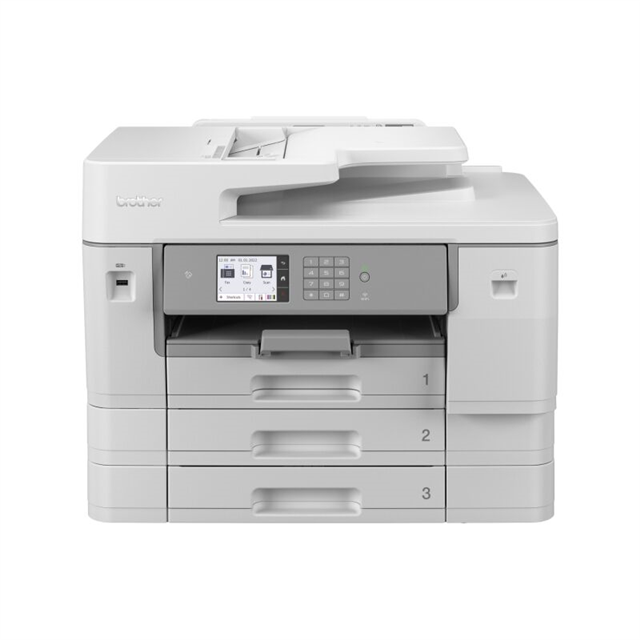 Printing speeds of up to 30ppm, a First Page Out Time (FPOT) of 4.4 seconds and 2-sided (duplex) print, scan, copy and fax up to A3 Dual band (2.4Ghz/5Ghz) Wireless Network support, Ethernet, WiFi Direct, NFC and USB Paper capacity across three trays up to 750 sheets plus 100 sheet multi-purpose tray Mobile compatible with the Brother Mobile Connect app INKvestment Ink Tanks with up to 1 years of ink supplied in-box