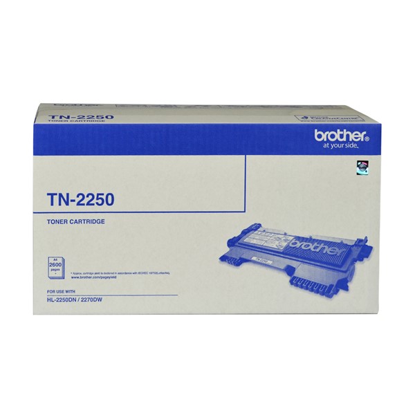 The Brother TN-2250 Black is a high-yield toner cartridge for select Brother mono laser printers, designed to produce sharp, professional-quality black text and images with a page yield of approximately 2,600 pages