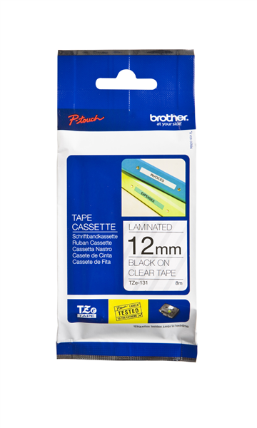 Brother TZe-131 12mm x 8m Black on Clear Tape is perfect for restocking your Brother TZe label maker