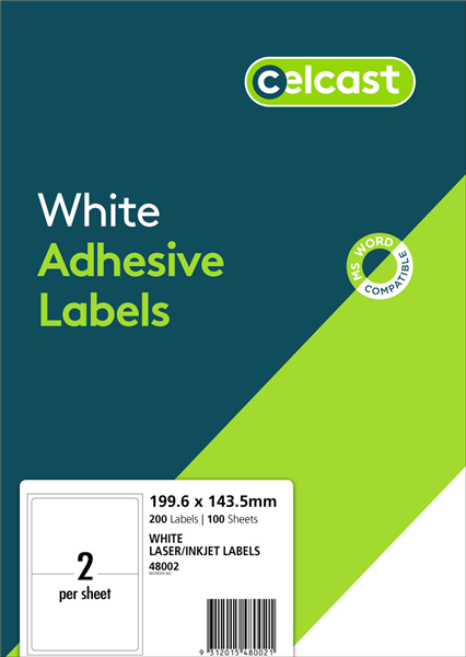 Celcast Labels 2UP 199.6x143.5mm White 100 Box Adelaide Direct Stationers
