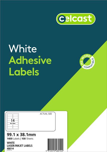 Celcast Laser Inkjet Adhesive Label 14UP White 100 Box