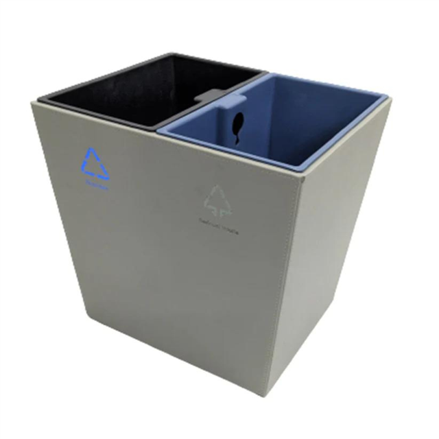 Elevate your recycling game with our 14L Gray Premium Leather Recycle Bin, where sophistication meets functionality