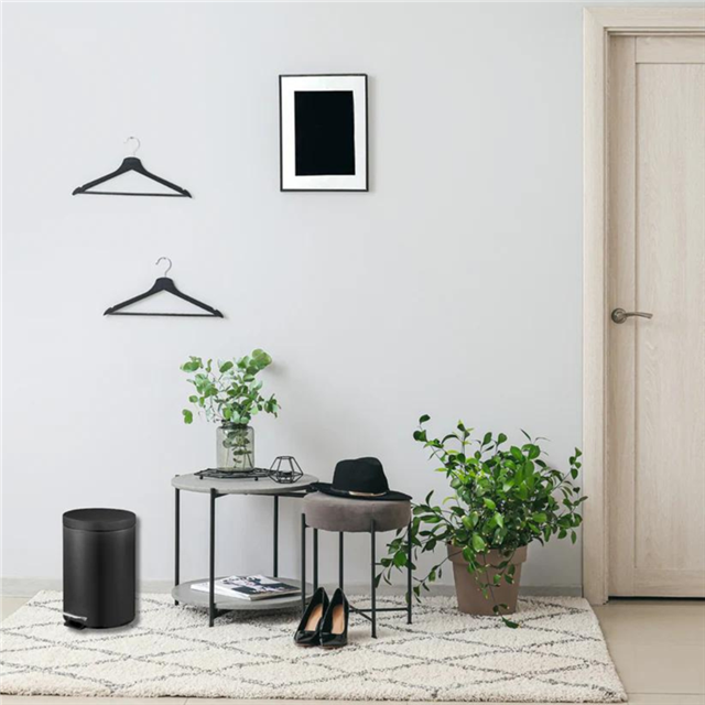 • With its compact 5-liter capacity, it fits neatly into tight spaces while still accommodating everyday waste