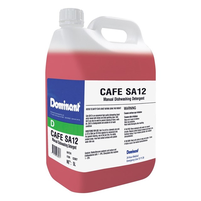 Dominant Manual Dishwashing Liquid Cafe SA12 Bottle 5L Adelaide Direct Stationers