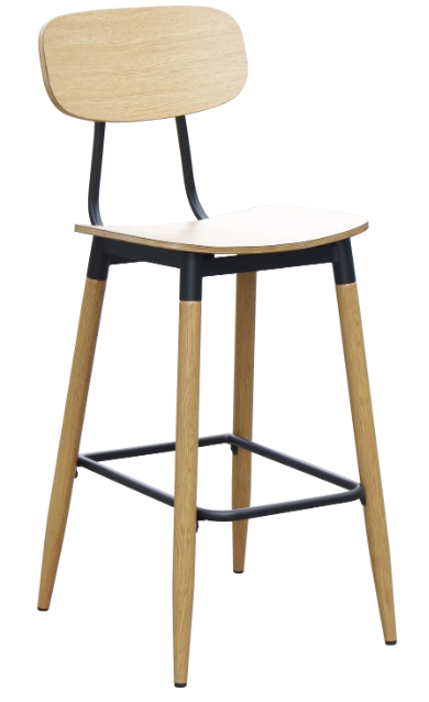 Brand: Durafurn Overall size: W500xD555xH1100 Seat Height: 750mm Steel Leg with wood finish Ply Back & Seat 3 Year commercial Warranty SWL: 150kg
