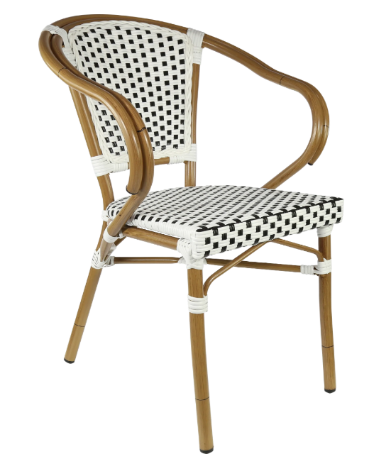 Crafted with precision, the Eiffel Armchair features a natural bamboo look coated aluminium frame and UV resistant PE wicker, ensuring resilience against the elements while exuding timeless elegance