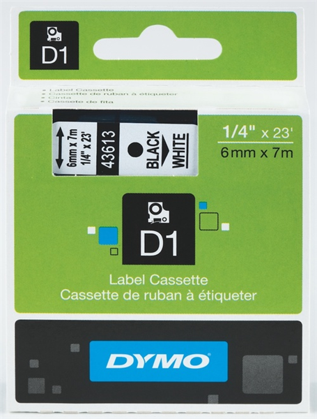 Dymo D1 Label Tape Black on White 6mm x 7m Each