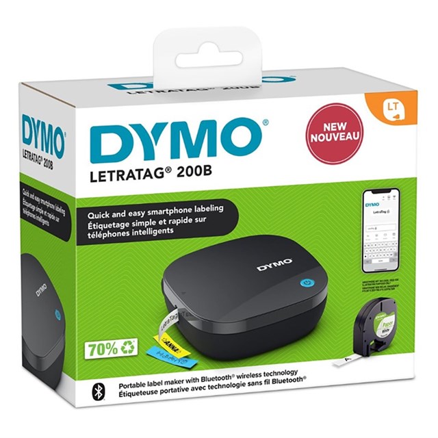The portable DYMO LetraTag 200B Bluetooth for home and home office is easy to use and ready to go in seconds, using automatic Bluetooth wireless technology connection to print all LetraTag label types and colors