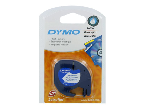 Dymo LetraTag Labeller Tape Plastic White 12 x 4m Each Adelaide Direct Stationers